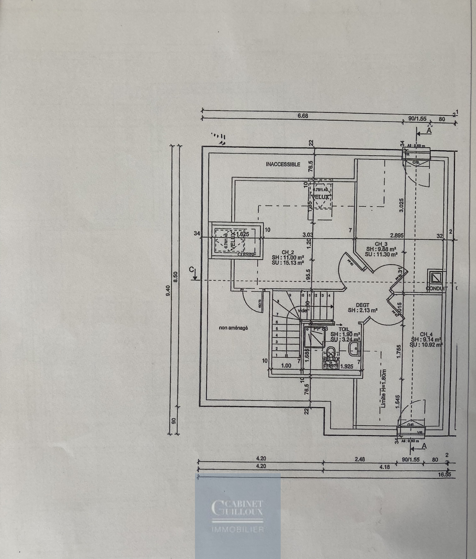 L'étage est constitué de 3 chambres et d'une salle d'eau avec WC.